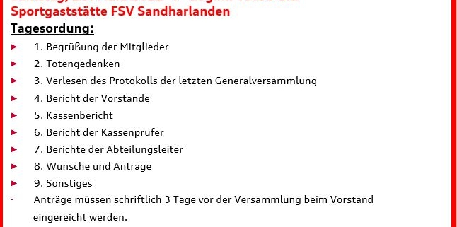 Einladung zur FSV- Generalversammlung – 26.03.2022