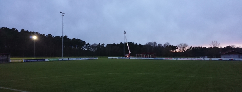 LED- Flutlicht am Fußball- Trainingsplatz und an der Stockschützenanlage montiert und einsatzbereit
