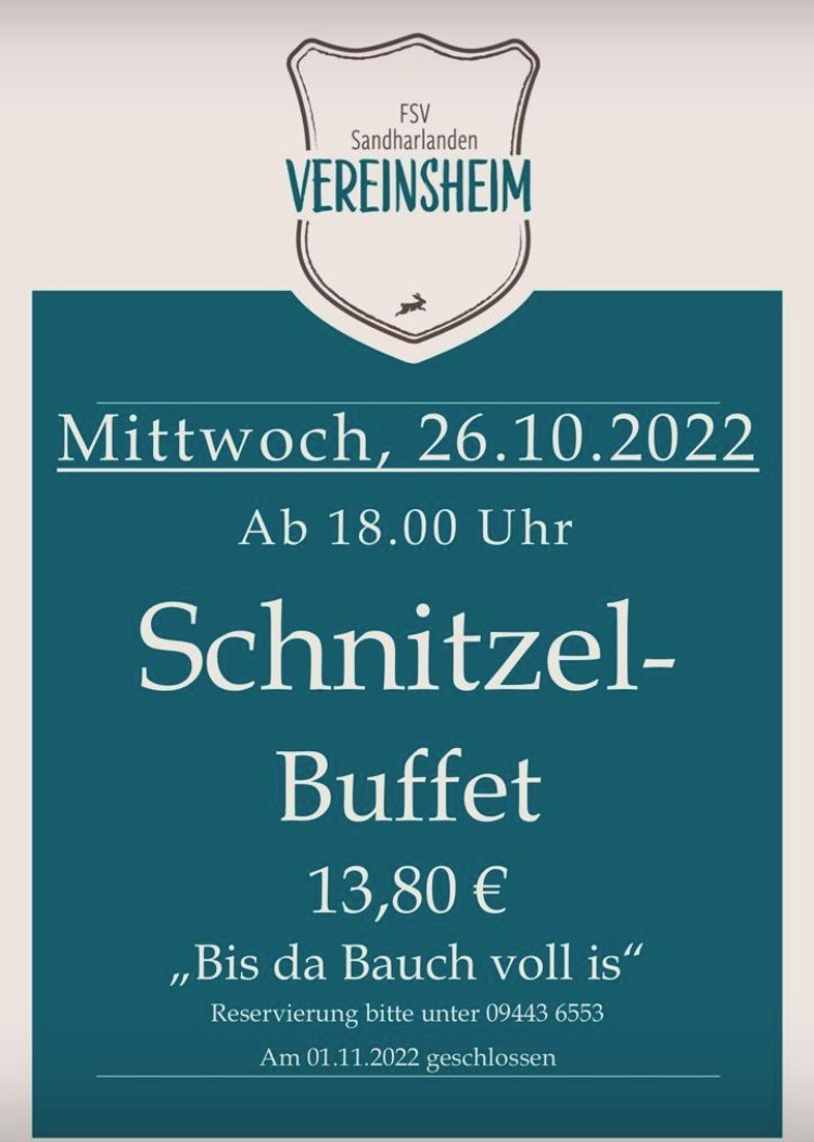 26.10.2022: Schnitzel- Buffet (All you can eat) in der Sportgaststätte